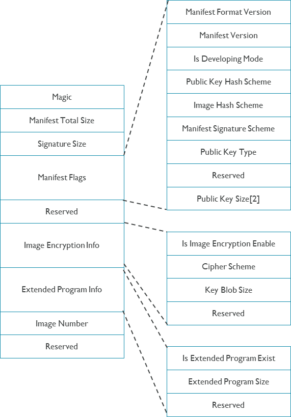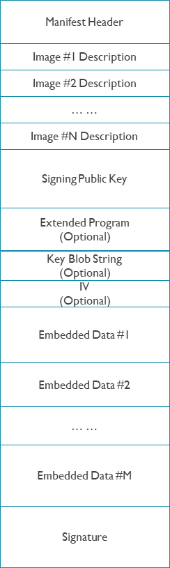 Generating manifest file. Manifest is the metadata that describes the secure boot configurations. Details about manifest see section 5.3.