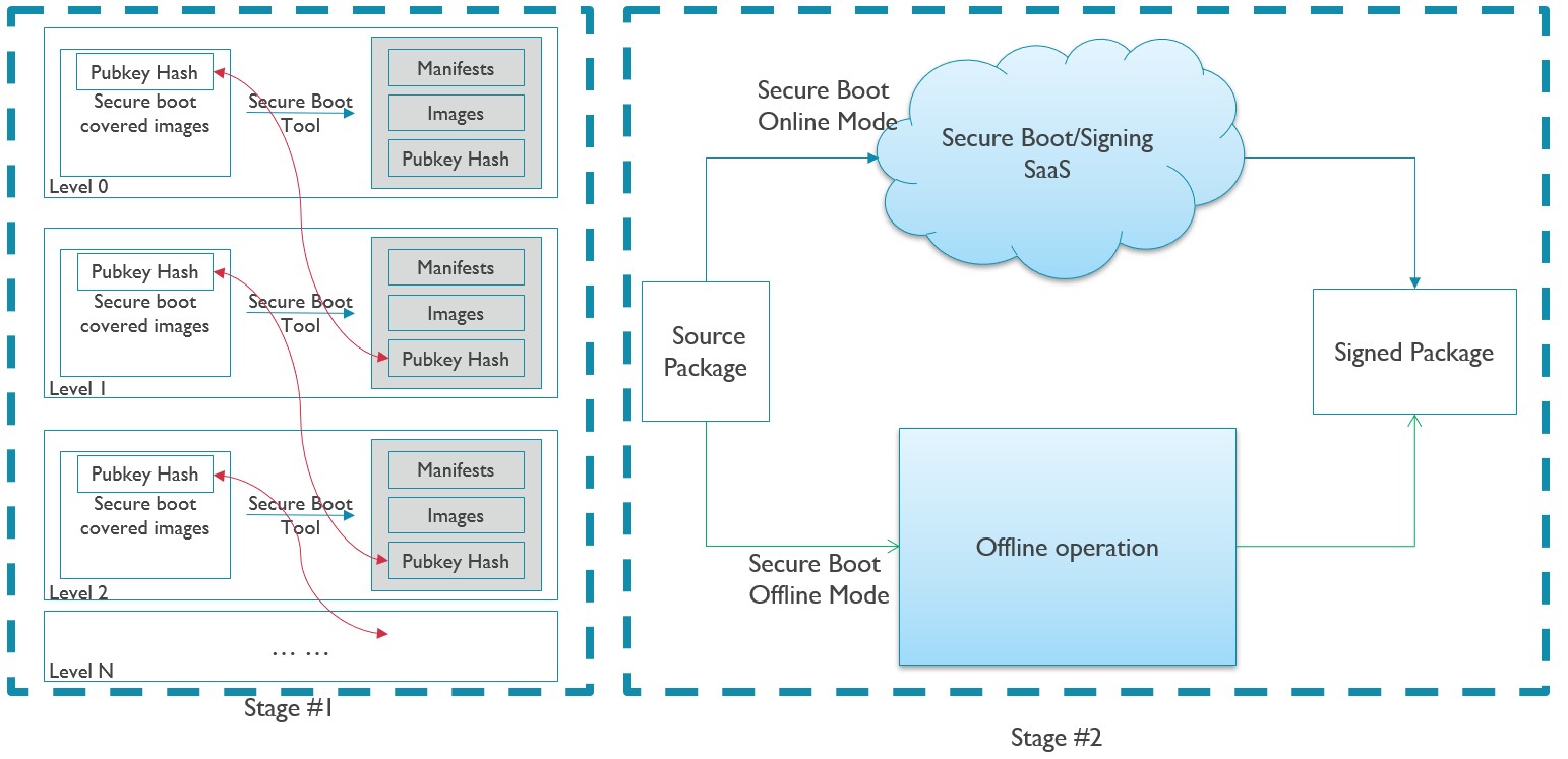 On host side, the signing tool extract the input source package and re-signing with new keys to generate final signed package. This may happen on secure boot SaaS/signing SaaS or offline environment, and the associated solution is called online or offline secure boot.