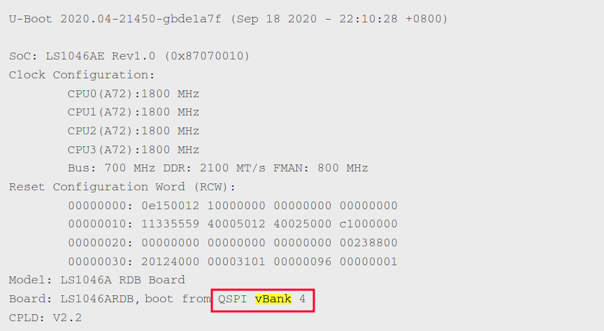 wget https://www.nxp.com/lgfiles/sdk/lsdk2108/firmware_ls1046ardb_qspiboot.imgpower reset板子,让板子从QSPI NOR Flash 0启动,进入FLASH 0的reboot。