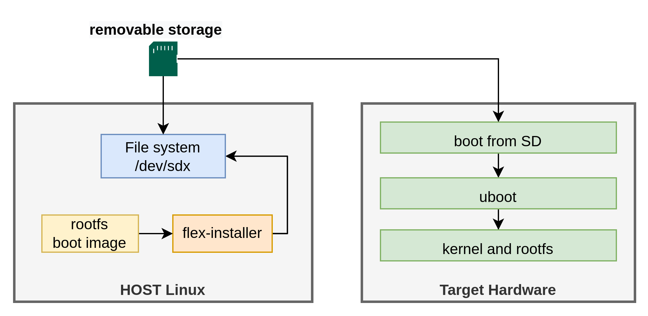 For SD boot, first generate composite firmware by command 'flex-builder -i mkfw -m -b sd', then program it into SD card under U-Boot prompt, or program it by command 'flex-installer -f