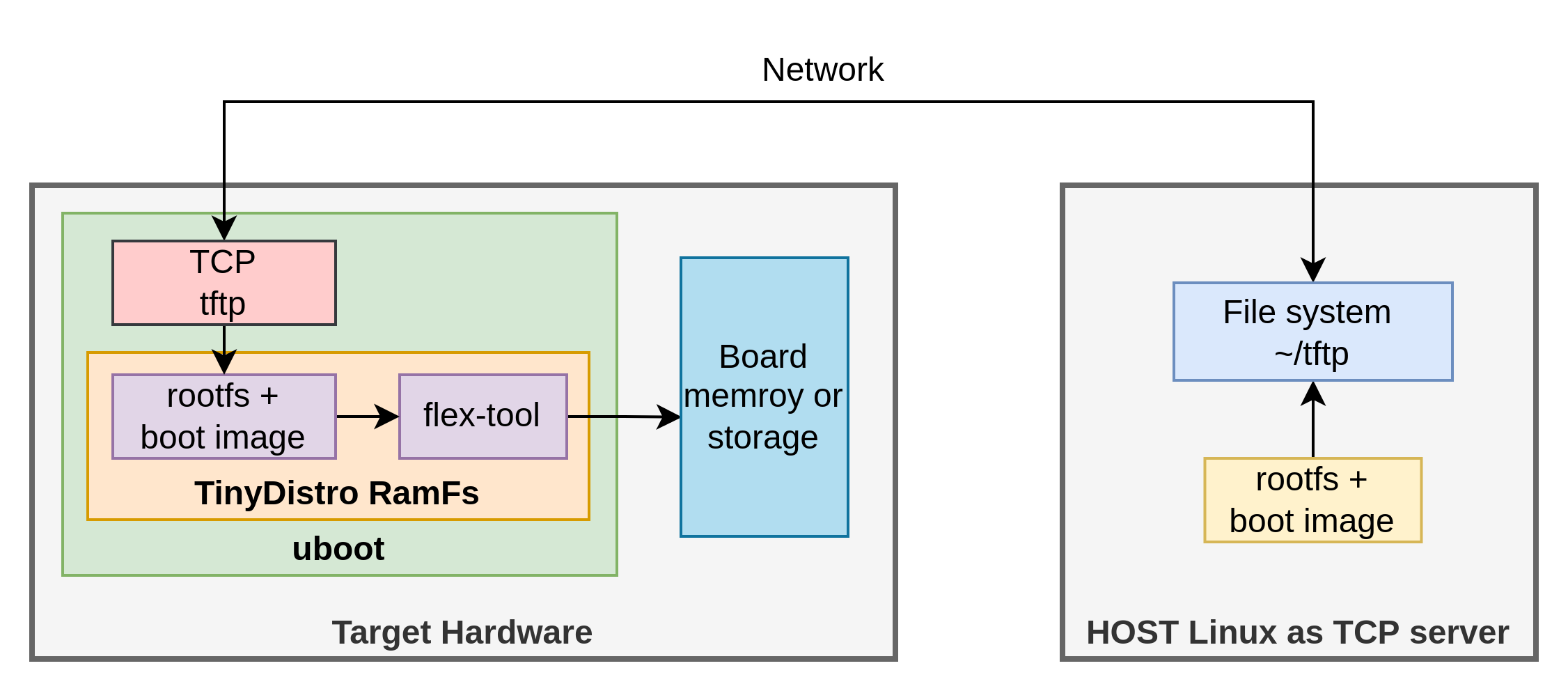 另外,该工具甚至可以在目标板子的uboot环境运行,原理是,uboot使用一种TinyDistro的RAM文件系统,则可以对这个工具提供支持。在uboot环境,就可以直接使用该工具对板子的存储介质数据进行更新。