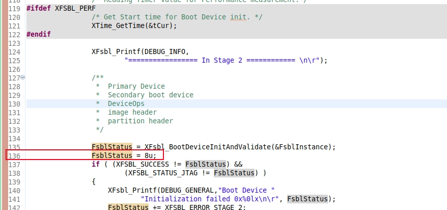 接着,我们需要生成一个故障的zynq_mb_fsbl.elf,可以在其源代码中,修改某个节点返回值,插桩制造一个错误。