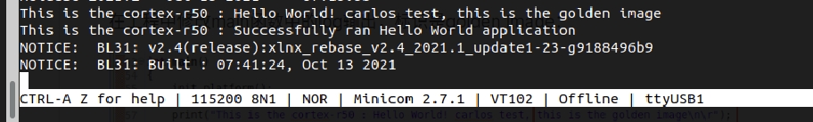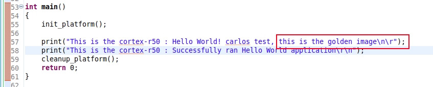 为 cortex-R5核心的普通应用程序(设定输出log为"golden image",以此识别当前引导所在路径为golden image);设定