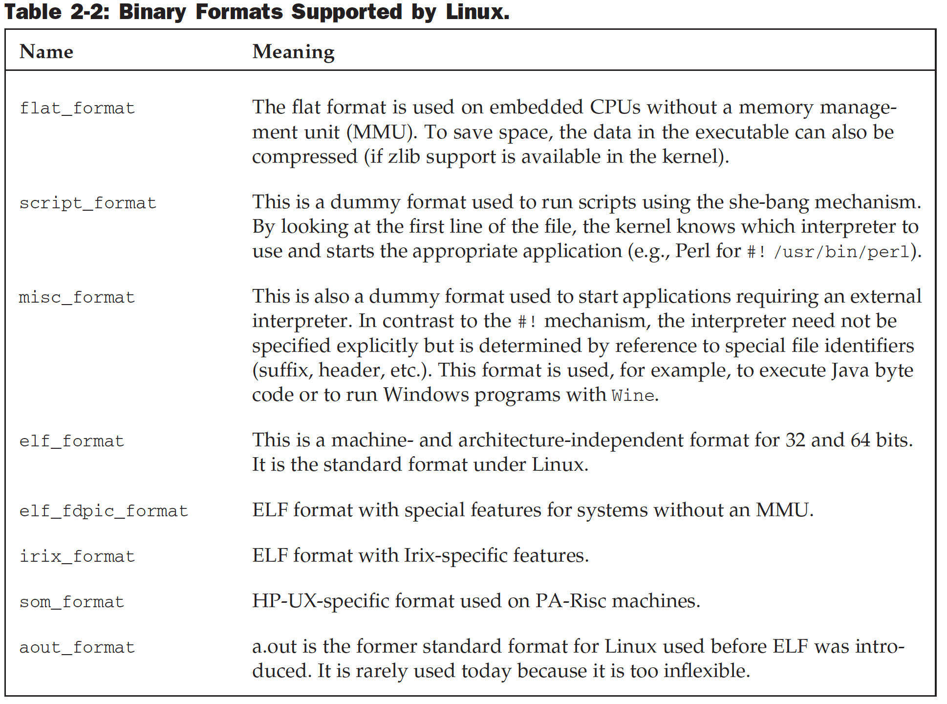 除了ELF格式,还有几种Linux支持的二进制格式,这里列举作为参考: