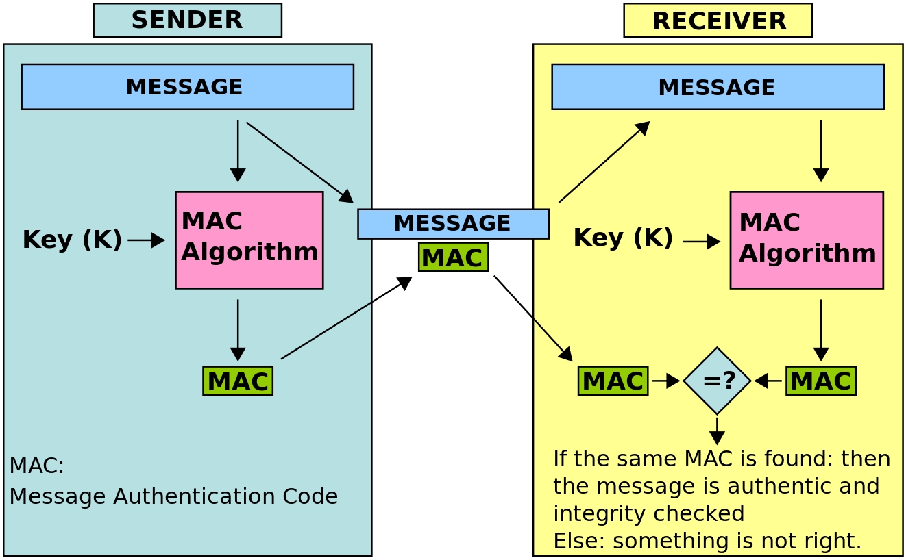 Digest仅仅能够验证信息的完整性(Integrity),而没有办法确认信息的身份认证(Authetication)。例如,Alice收到一则需要Bob汇款1000元的消息,同时收到汇款消息的hash值,Alice可以计算hash确认1000元这个消息没有被篡改,但问题是,这则消息不是由Bob发的呢?因此就需要更高明的方法来帮助确认这个消息没有被篡改,还要确认这个消息是Bob发的。