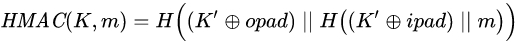 根據RFC 2104,HMAC的數學公式為: